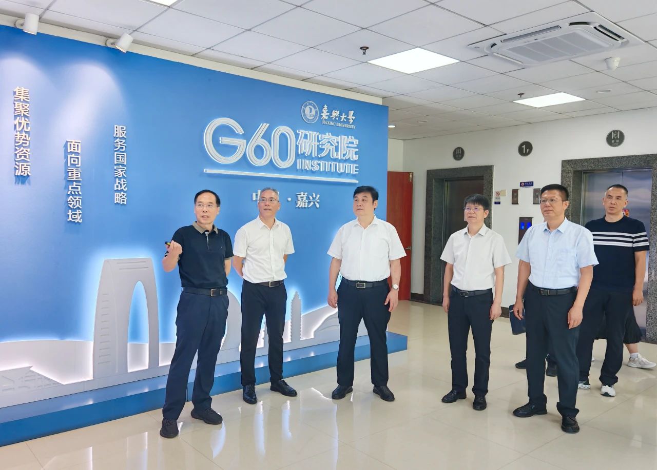 8月20日下午,经开区党工委副书记、管委会副主任李超,区党工委委员、公安分局局长袁知峰一行在嘉兴大学党委委员、副校长於建明的陪同下莅临研究院调研。